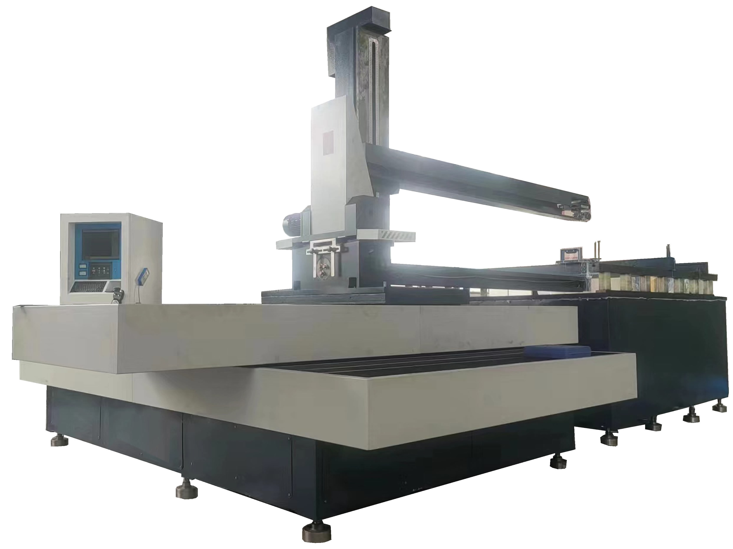 為了滿足客戶的不同需求,公司承接開(kāi)發(fā)及生產(chǎn)各種規(guī)格的大行程、大厚度線切割機(jī)床,XYZ軸最大行程可達(dá)3000×4000×1500mm,后置式驅(qū)動(dòng)結(jié)構(gòu)線切割機(jī)床、動(dòng)柱式龍門(mén)線切割機(jī)床,最大載重可達(dá)30噸以上,以及為航空及造船業(yè)特殊用途的多頭線切割、專用大型齒輪線切割加工機(jī)等,具有高速、高精、載重量大、專業(yè)性強(qiáng)等特點(diǎn),可為大型機(jī)械廠、高鐵、造船、汽車、航天、航空、無(wú)人機(jī)、軍工等領(lǐng)域定做各種規(guī)格的特種機(jī)型。